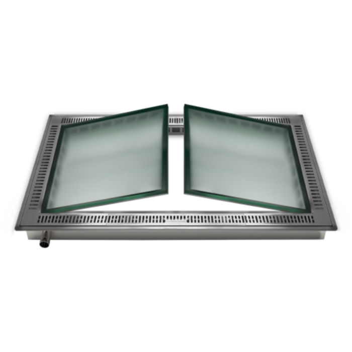 The openable Lucernario collects rainwater from its drainage channel and allows the ventilation of the technical room through the air intakes. The constant flow of air and the action of the electric fan ensures the control room breathes better. Humidity is considerably reduced and consequently so is the risk of system usury. The air intakes are protected by anti-insect and anti-dirt nets. Simply lift the grid to clean the run-off channel.